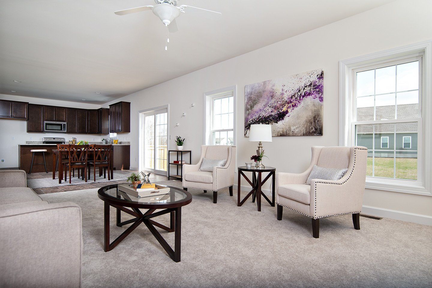 The specific features in a home may vary from home to home and from one community to another. Square footage and dimensions are estimated and may vary in actual construction. We reserve the right to substitute equipment, material, appliances and brand names with items of equal or higher value at our sole discretion. As we continue to improve our customer satisfaction we occasionally make changes to specific floor plans. Elevations are artist renderings and may depict additional options, upgrades, and products that may not necessarily be included as part of our current features nor should any elevation be construed as part of any individual contract. Floor plans are the copyrighted property of Riverview Builders